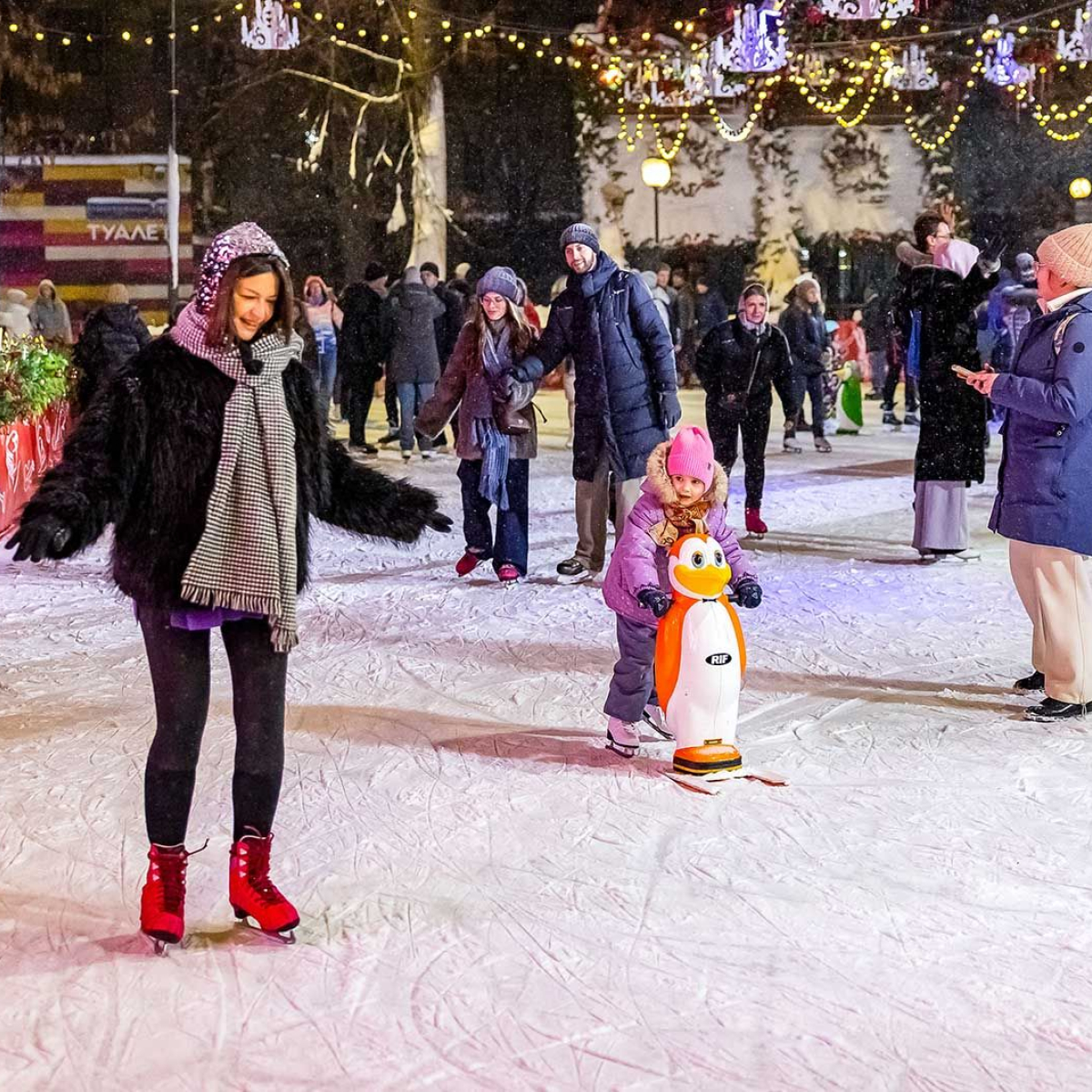В парке "Сокольники" ещё функционирует каток "Лёд" площадью 5000 м² – он рассчитан на 500 гостей одновременно. Даже в оттепель температура покрытия поддерживается специальной техникой, подчеркнули в мэрии.