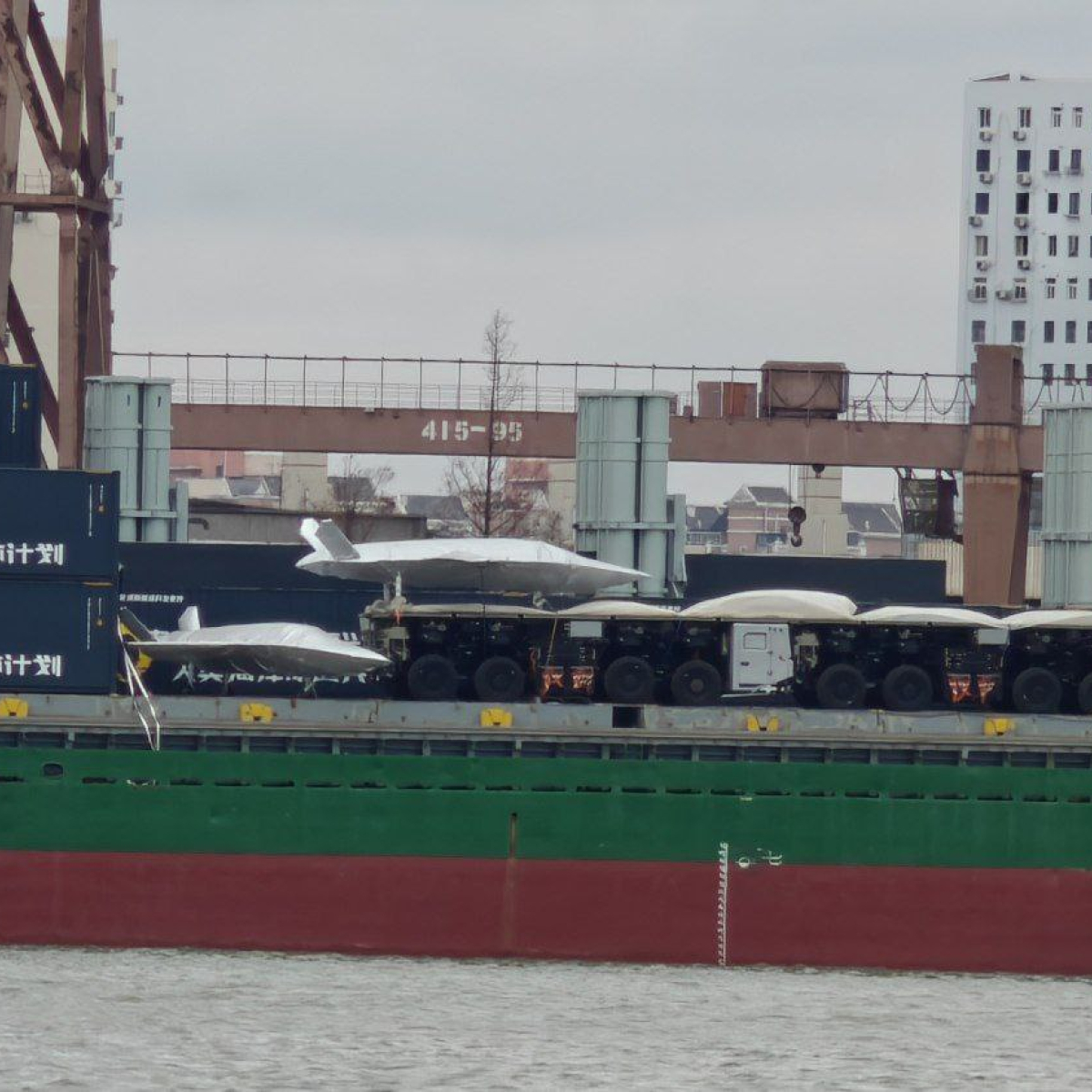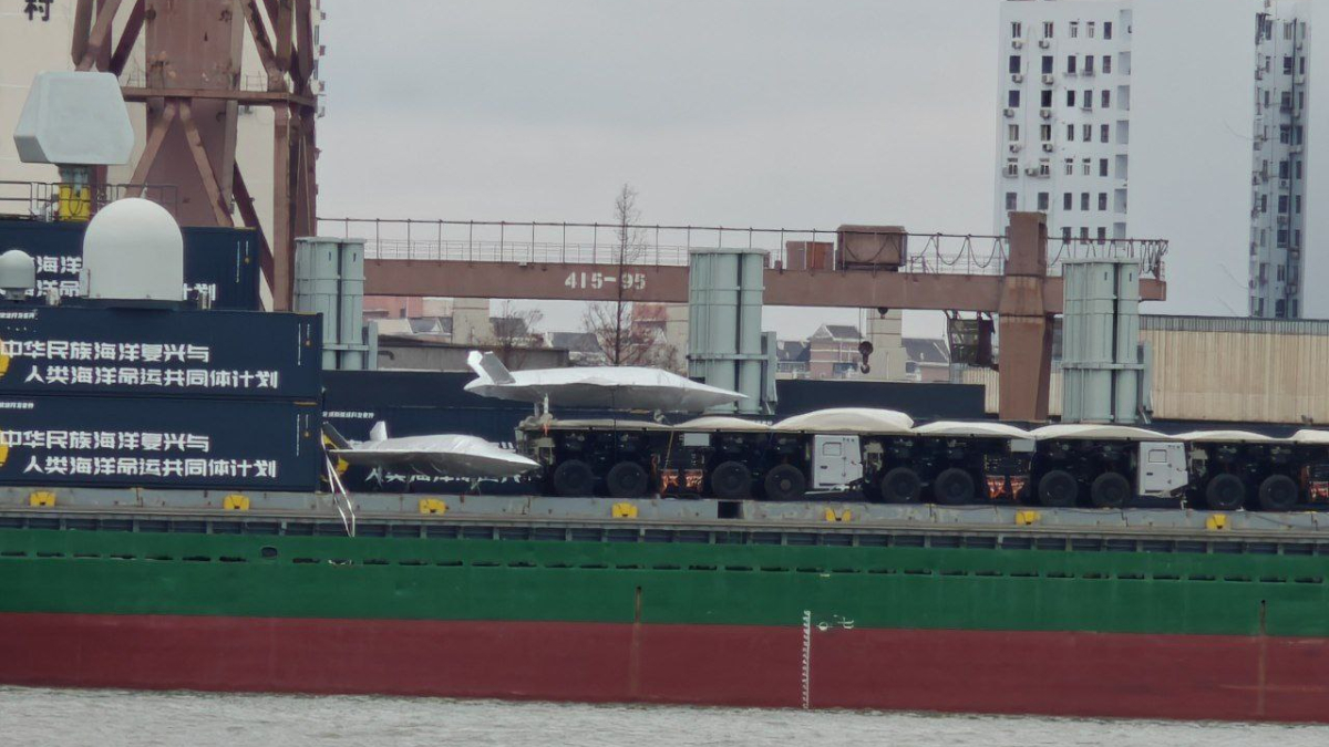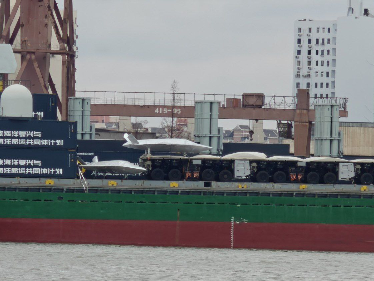 На верфи Hudong-Zhonghua в Шанхае на одном из гражданских грузовых судов были замечены платформы, позволяющие использовать его как авианосец для запуска боевых беспилотников.