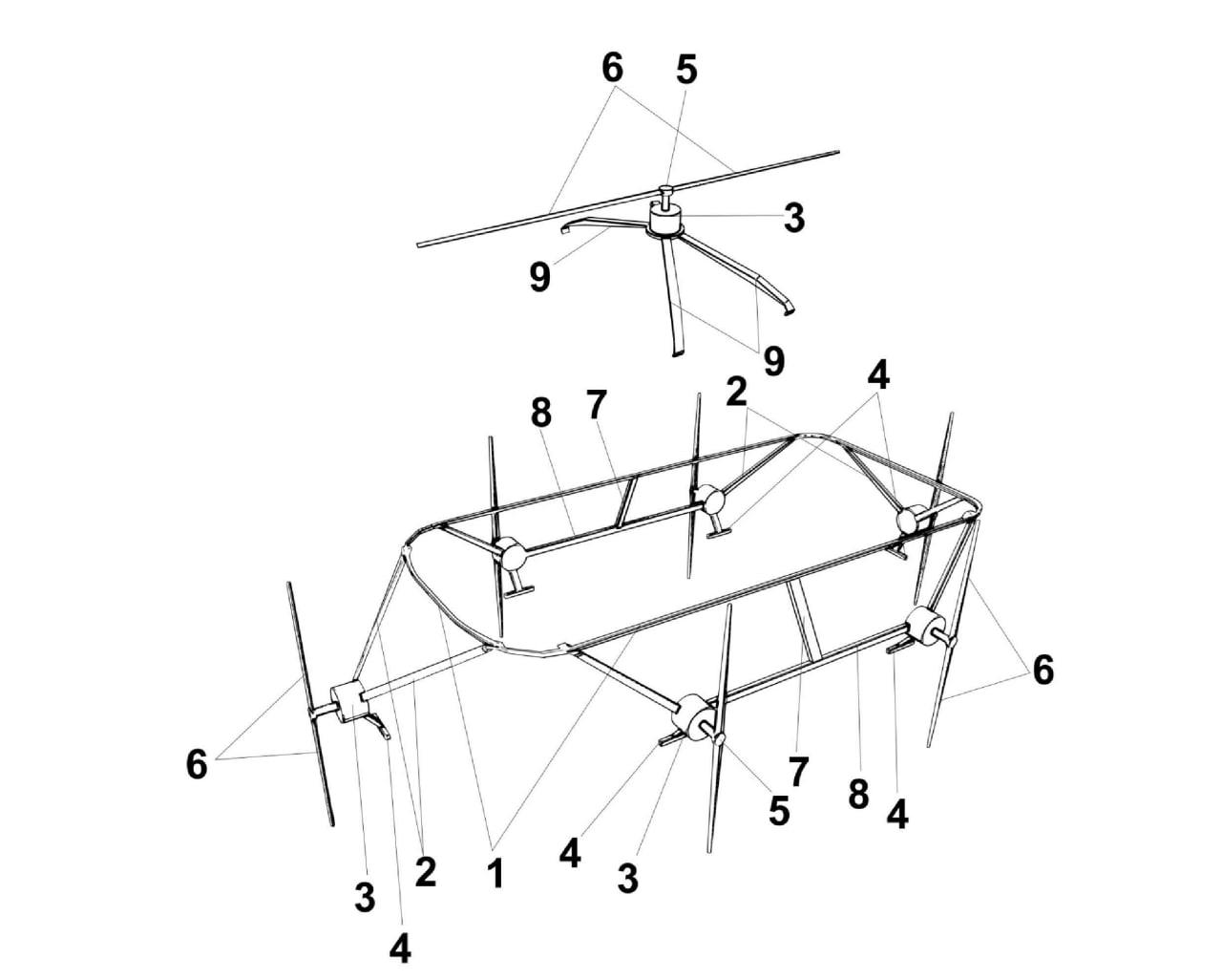 Телеграм-канал "Беспилот" обнаружил в базе Роспатента изобретение для защиты транспортных средств от атак дронов при помощи пропеллеров. На иллюстрациях крышу УАЗа-"буханки" оснащают электромоторами с длинными пропеллерами, которые вращаются со скоростью до 600 об/мин, и именно они должны отбивать атаки.