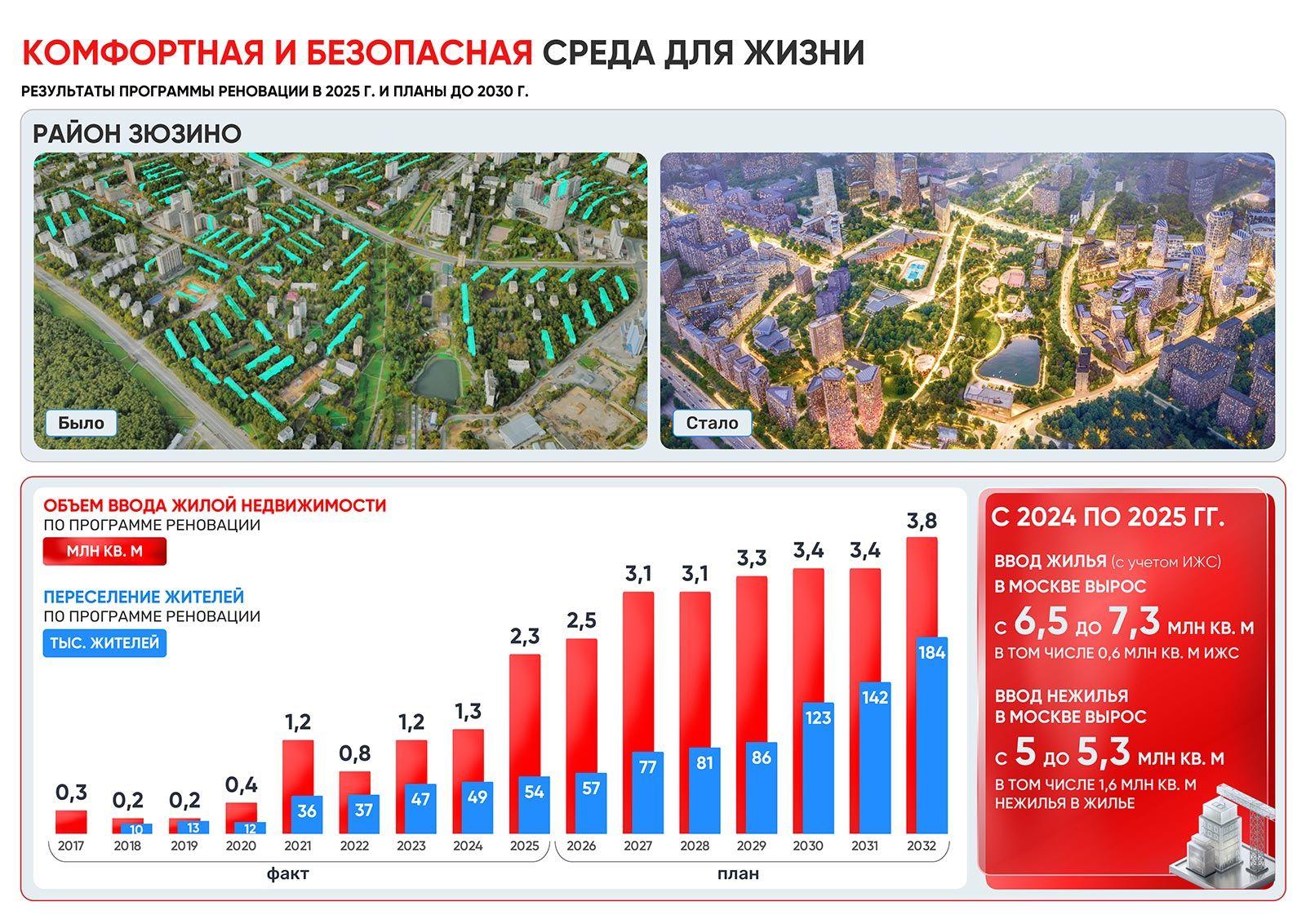 Собянин привёл цифры: в этом году число граждан, переселённых по реновации, достигло 250 тысяч, а объём строительства составил два с лишним миллиона квадратных метров.