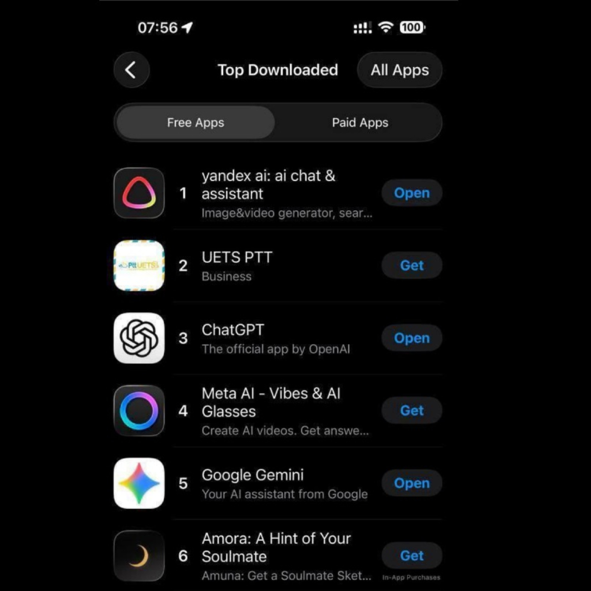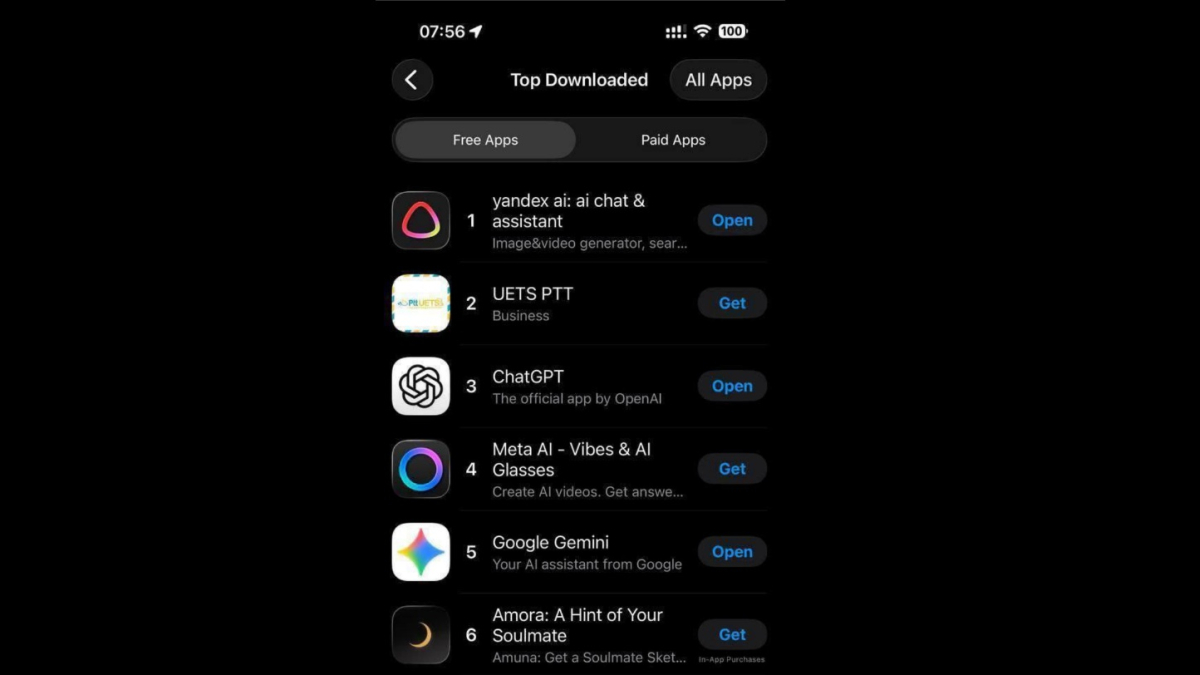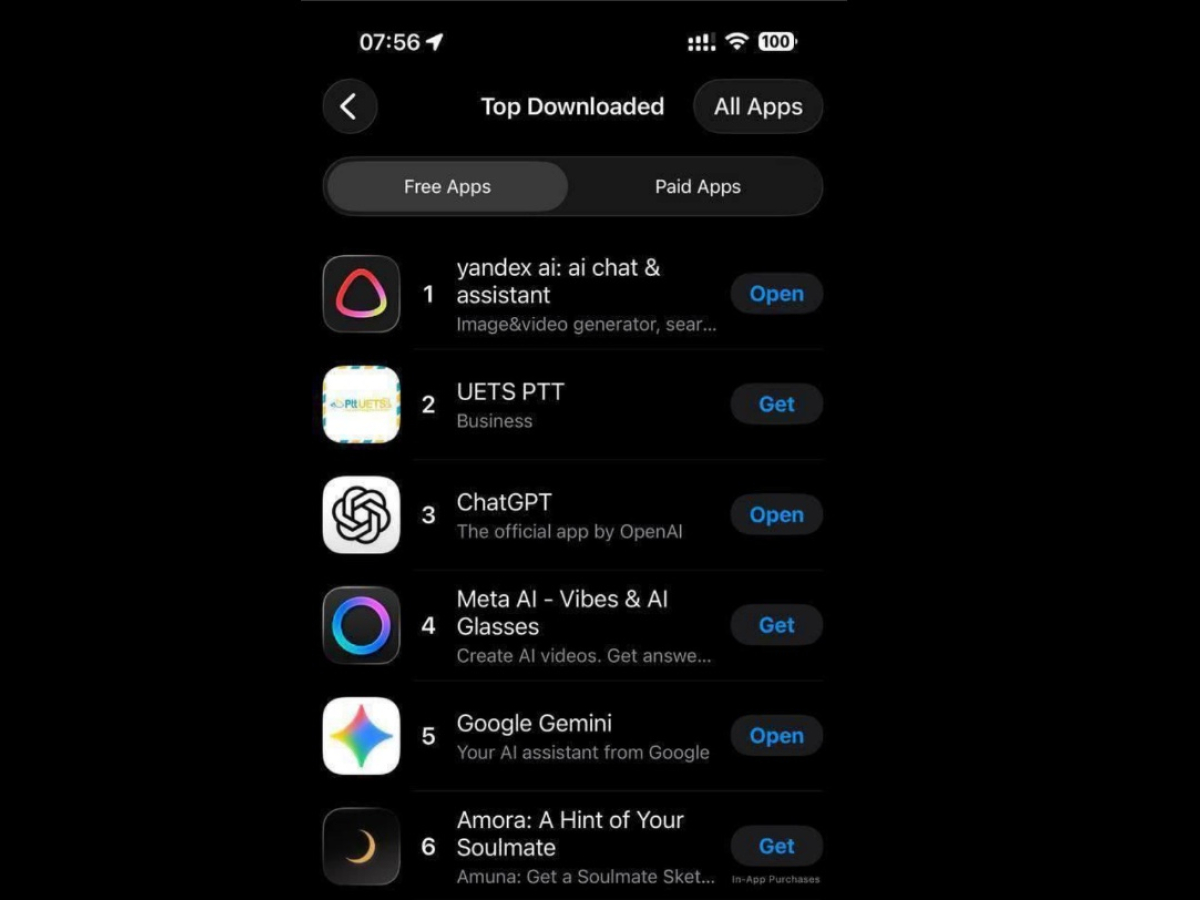 Приложение Yandex AI заняло первую строчку в рейтинге бесплатных программ App Store на территории Турции, оставив позади международных конкурентов.
