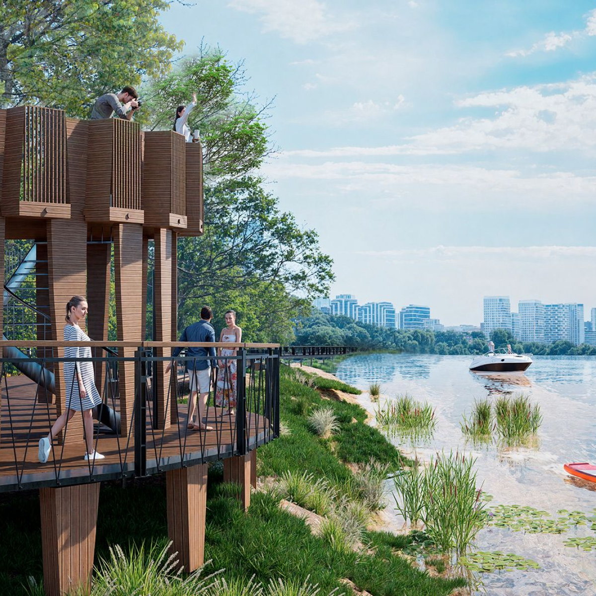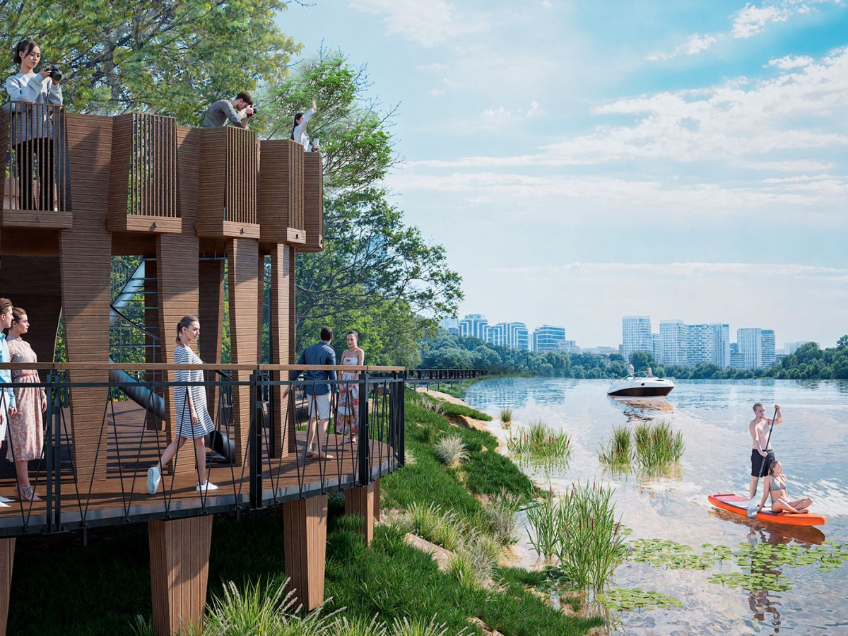 В Мнёвниковской пойме создают сразу две набережные – западную (от улицы Нижние Мнёвники до пляжа у Крылатского моста) и восточную (от перекрёстка улицы Нижние Мнёвники – Проектируемый проезд №1166 до нового моста-паруса в районе Новозаводской улицы). Здесь тоже проложат пешеходные дорожки, создадут спортивные и детские площадки, оборудуют места для выгула собак и построят причал.