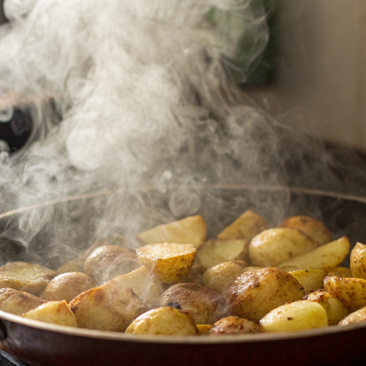 Если вы всё-таки решили использовать сковороду, то лучше выбрать чугунную, а не тефлоновую, и готовить на очень маленьком огне, добавляя немного воды и постоянно помешивая. Такой способ называется пассирование и продолжительность его достаточно коротка – 5-7 минут. За 1-2 минуты до готовности (а ещё лучше уже в тарелке) можно добавить в блюдо масло гхи для усиления аромата и питательности, рубленую зелень, чеснок. Такой способ не приводит к гликации, в таком блюде не образуются трансжиры, а вот питательные вещества и витамины максимально сохраняются. Кроме того, высвобождаются эфиры, насыщая блюдо ароматом, усиливая аппетит и улучшая переваривание.