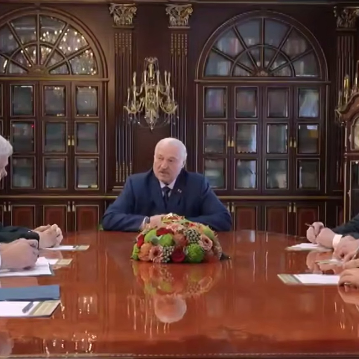 Белорусско-американские переговоры проходят во Дворце Независимости в Минске. Лукашенко ранее сообщил журналистам, что стороны обсуждают развитие двусторонних отношений — от восстановления работы посольства до освобождения заключенных по договоренностям с Трампом. "И экономические вопросы, и санкции — все в комплексе. Там вопросов десять", — добавил он.