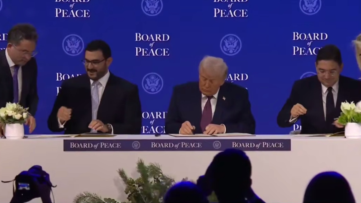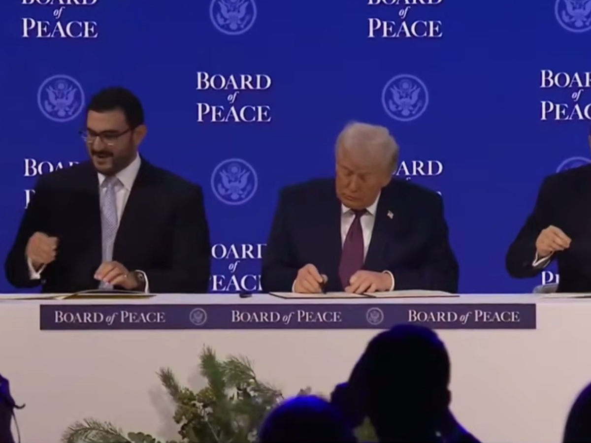 Американский лидер Дональд Трамп поставил свою подпись под уставом "Совета мира" — организации, учрежденной по его личной инициативе. Церемония состоялась на ежегодной встрече Всемирного экономического форума в Давосе.