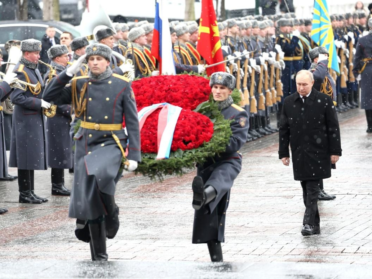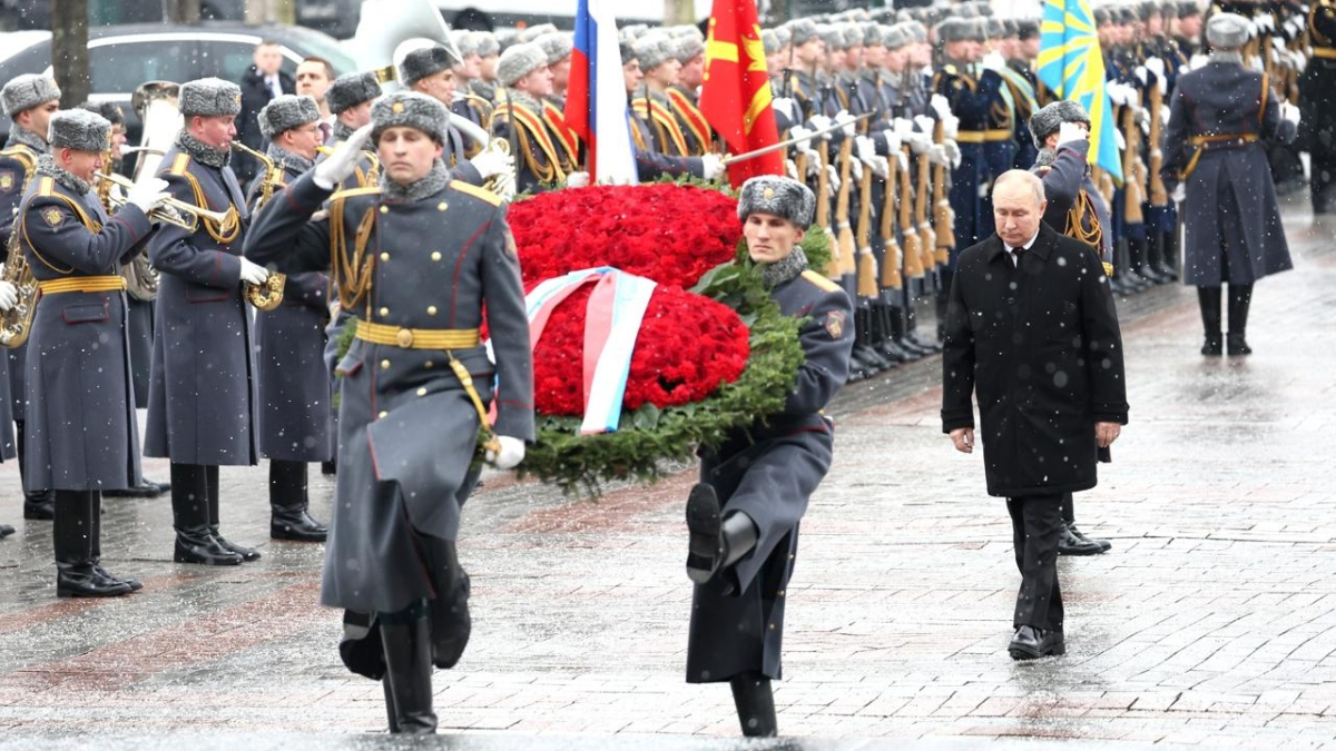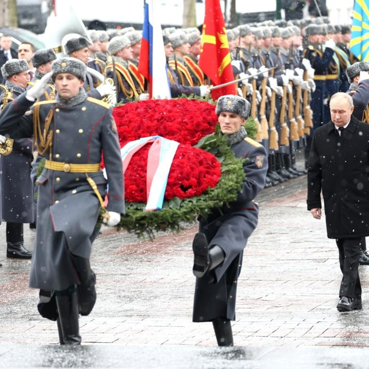 Вместе с главой государства в церемонии приняли участие министр обороны Андрей Белоусов, ветераны боевых действий и студенты военных училищ. Мероприятие завершилось торжественным маршем роты почётного караула и оркестра.