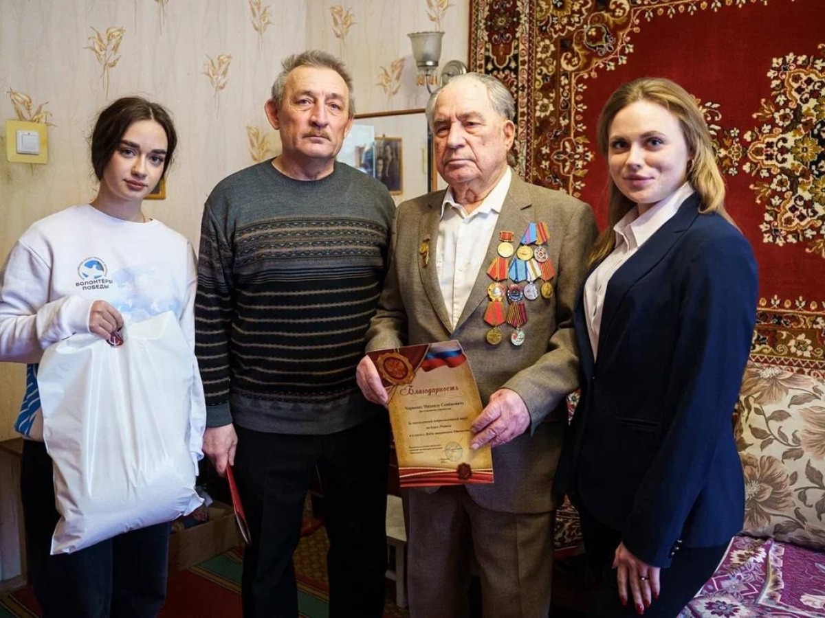 Особое внимание уделили личным поздравлениям. В Москве добровольцы навестили ветерана Ивана Петровича Лыткина: ему вручили портрет, написанный в рамках акции "Краски Победы". В Ростовской области активисты приехали к ветерану Петру Павловичу Голышкину. В Псковской области участники движения передали 150 подарочных наборов бойцам СВО, проходящим лечение в госпитале.