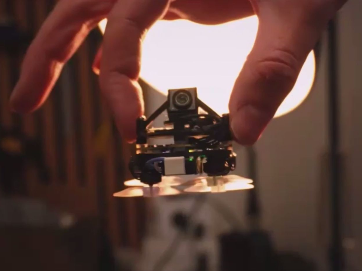 В Германии энтузиаст собрал чрезвычайно маленький FPV-дрон, способный записывать 4K-видео. Беспилотник построен на базе платы управления полётом Matrix 1S и оснащён четырьмя двигателями BetaFPV 0702 II.