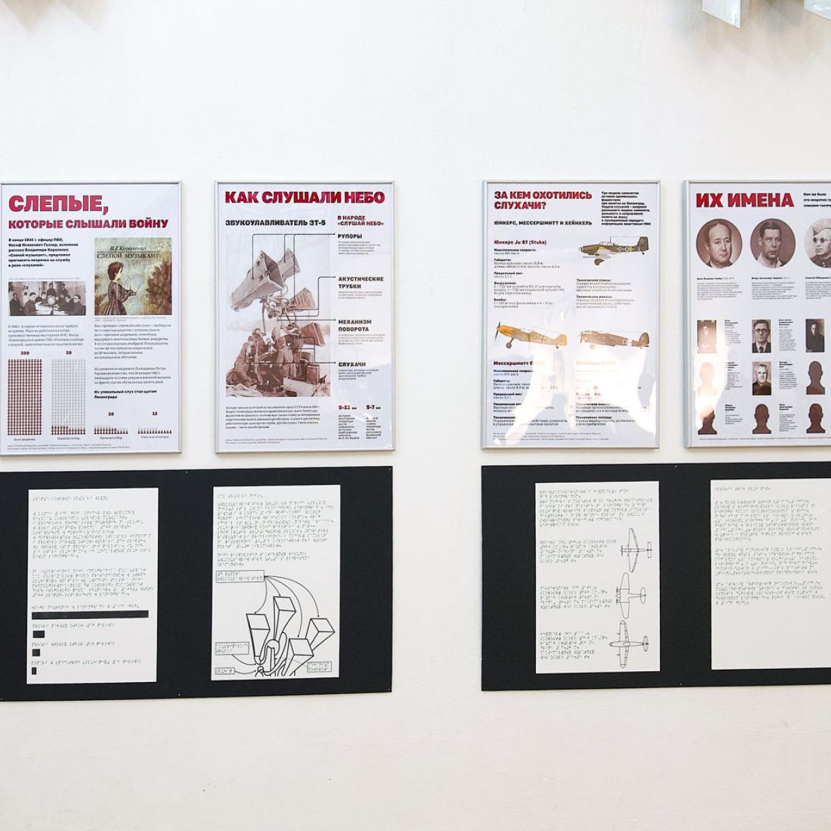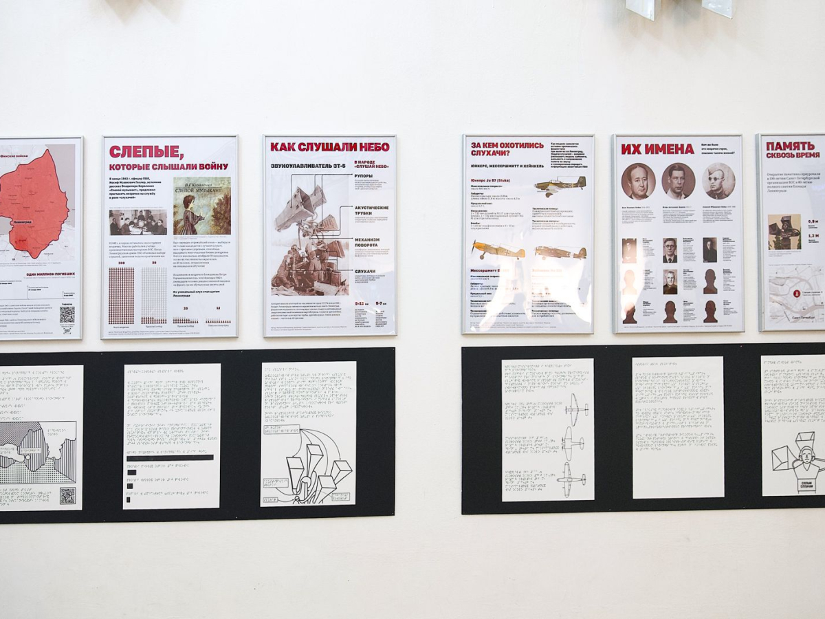 По словам выпускника университета "Высшая школа экономики" Владимира Малючкова, это малоизвестная история, о которой следовало бы говорить больше. Более того, организаторам выставки пришлось впервые создать тактильные карты времён войны – в те годы их вообще не существовало. В музее разместили QR-код, отсканировав который можно посетить сайт проекта и прослушать тифлоспектакль с реальными звуками самолётов и объяснением их характеристик, а также попробовать различить их на слух.
