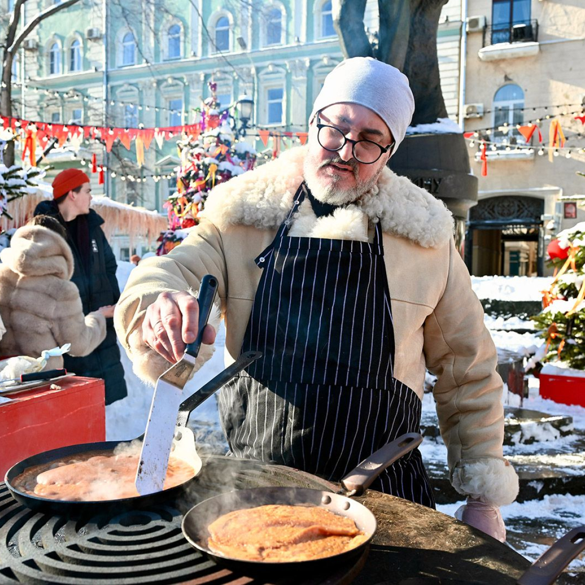 В свою очередь шеф-повары Максим Тарусин из ресторана "Восход", Эдуард Архипов из кафе "Шануар" и Юань Бин Тао из ресторана "Пекинская утка" на Масленицу продавали блины на улице, а все средства отправили бойцам, пребывающим на передовой.