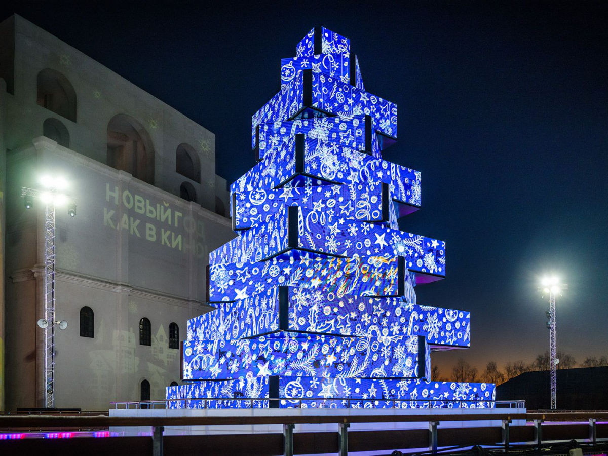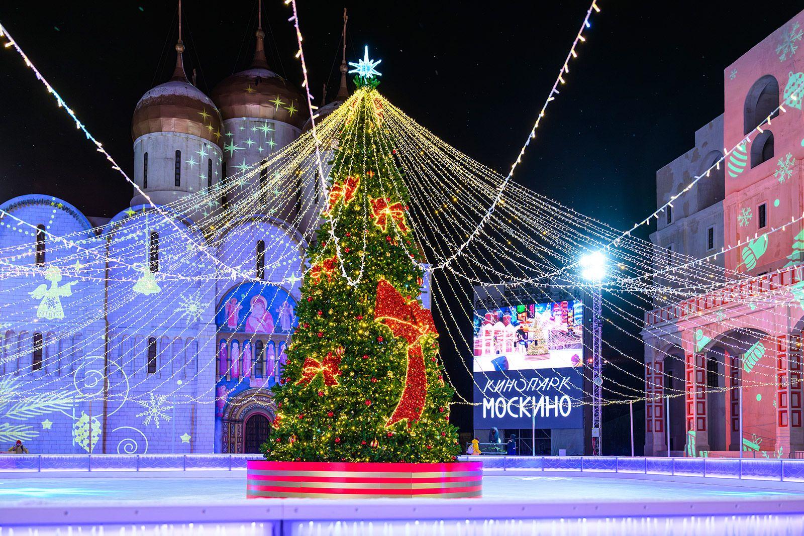 Столичный департамент культуры сообщил, что на катке подведомственному ему кинопарка "Москино" установили ёлку, состоящую из 184 LED-экранов. Её высота составляет 12 метров, ширина – 8 метров, число ярусов – 11.